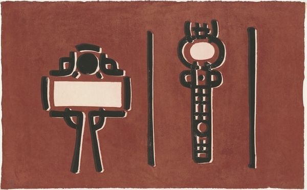 Victor Brauner created this painting, simply titled "Animal", in 1950, using gouache and ink on paper. The immediacy of the materials is striking. Unlike oil paint, which allows for layering and correction, gouache dries quickly, demanding a decisive hand. The ink outlines further emphasize the directness of the artist's gesture. Brauner doesn't seem interested in illusionism here. Instead, the material qualities of the gouache – its opacity and matte surface – create a flat, graphic image. Consider how the texture of the paper itself becomes part of the work, peeking through the layers of paint. The entire composition is defined by a tension between spontaneity and control. The bold colors and simplified form evoke something primal, hinting at a world of instinct and raw emotion. This piece invites us to think about how humble materials, combined with an adventurous spirit, can produce work that transcends traditional categories of art.