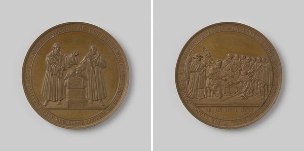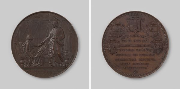 This is a bronze medal by Salomon de Vries, commemorating the third centenary of the capture of Brielle. It was made in 1872. The medal commemorates an event from 1572, when the Watergeuzen, rebels against Spanish rule, captured the city of Brielle. This event is seen as a key moment in the Dutch struggle for independence. The imagery on the medal is revealing. On one side, we see allegorical figures representing the Netherlands. A young woman stands with a Dutch lion, symbolizing courage and strength. Next to her, an angel raises a torch, representing liberty and enlightenment. On the reverse, the Dutch coat of arms is displayed, a powerful emblem of national identity. This medal is not just a historical marker; it's a statement about national pride and identity. It invites us to reflect on how societies choose to remember and celebrate their past, and how these memories shape their present. It prompts us to consider the complex relationship between history, identity, and power.