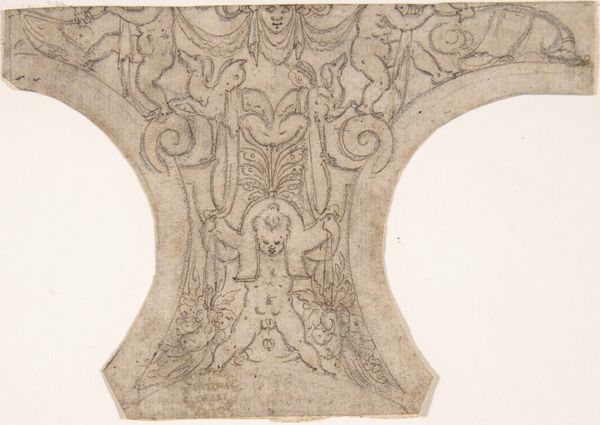 Editor: So, here we have Mattheus Terwesten's "Ontwerp voor een hoekstuk van plafond met personificatie van de Matigheid", a design for a ceiling corner piece from somewhere between 1680 and 1757. It's executed in pen, charcoal and tempera. I find it rather ethereal and weightless; what's your interpretation of this work? Curator: It is a beautiful example of Baroque allegory. Look how the artist uses the "personification of moderation" not just as a figure but as a social commentary. The ideal of "moderation" was weaponized and used to subjugate entire social strata and erase intersectional experiences. Notice the presence of the cherubs, which further emphasizes the allegorical and historical context. What does this drawing evoke in *you* regarding contemporary society? Editor: I never considered the social control implications within these older works, to be honest. It's interesting to consider if "moderation" serves a controlling purpose today. Curator: Exactly. Academic art, especially within the Baroque, functioned as a didactic tool for those in power. These allegories presented morality lessons but often reinforced existing hierarchies of race, gender, and class. The ethereal aesthetic masks a concrete agenda. Do you find that unsettling? Editor: It definitely casts the work in a new light. The beautiful lines and soft medium hid a potentially sinister layer. Is this something the average viewer might miss? Curator: It's precisely what's meant to be overlooked. Consider how effective this type of messaging becomes, then! How can we resist such art’s insidiousness and reimagine visual representation for marginalized voices and resistance in the current political climate? Editor: Now I see this drawing not just as an artistic creation, but as a historical and political artifact loaded with problematic implications that must be resisted. I really appreciate this reframing; it completely changed my perspective. Curator: Indeed, it prompts a further investigation and recognition that art must never be divorced from the sociopolitical context. Thanks for allowing me to reflect out loud and reconsider this with you!