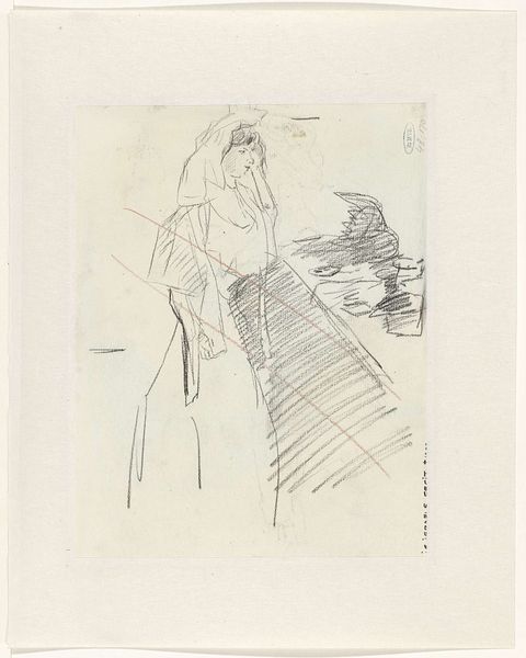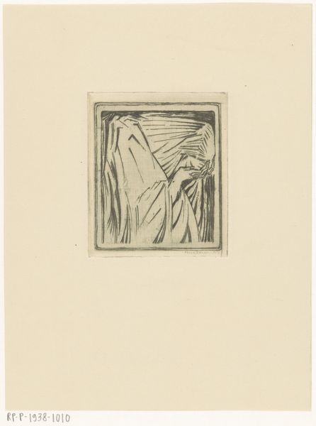 Ernst Ludwig Kirchner made this print, Gewecke und Erna, without a date, using etching. I find the composition of this picture fascinating, it feels like the image is fractured and reassembled with these sharp, angular lines. Looking at this work, you can see how the etched lines create texture and depth. There’s a kind of rawness to the lines, they aren’t smoothed or refined, it’s all very immediate. Notice how the lines define the figures and their surroundings, creating a sense of tension and unease. The angularity of the lines seems to echo the emotional state of the subjects. The area around the eyes of the man is particularly striking, they seem sunken and tired. Kirchner, like many artists, was part of an ongoing conversation about how we see and represent the world. His work reminds me a little of Edvard Munch. It offers no easy answers, and maybe that’s the point. It’s about opening up a space for thinking and feeling.