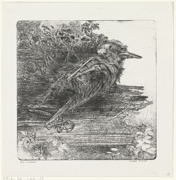 Emilius Wilhelmus Dehé created this image of a falcon on a branch with etching. The falcon, perched with focused intensity, embodies potent symbolism stretching back through ages. Historically, the falcon signifies nobility, power, and keen vision. In ancient Egypt, it was the emblem of Horus, a god linked to kingship and protection. This bird of prey, ever vigilant, becomes a cultural messenger—a motif passed down through history. Consider the falcon's presence in medieval falconry versus its depiction in modern heraldry. Its essence remains, yet its application shifts, influenced by socio-political climates and cultural adaptations. This mirrors the way symbols evolve in our collective psyche, constantly reinterpreted. Such images tap into deep, often subconscious, layers of understanding, stirring something primal within us. The falcon continues to resurface, carrying echoes of past meanings while adapting to new cultural landscapes, reminding us of art's enduring power.