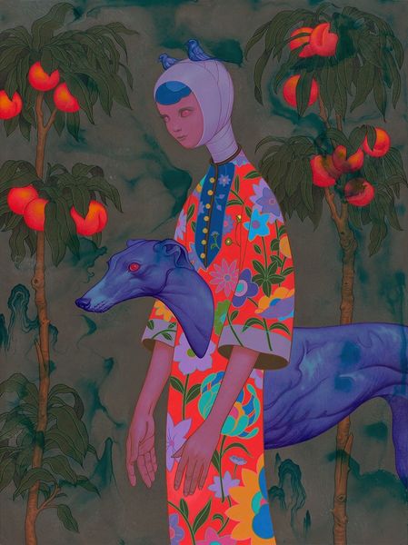 Sofia Bonati's "Peonia" presents us with an arresting image of a girl crowned with pig ears, cradling a small piglet in her arms, all rendered with delicate precision. This merging of human and animal forms brings to mind ancient myths of transformation, where deities and mortals alike could shift between realms, embodying different aspects of nature. Consider Circe from Homer's Odyssey, who transformed men into swine, or the Egyptian goddess Isis, often depicted with animal attributes. In Bonati's piece, we see not a violent metamorphosis but a gentle fusion, suggesting empathy and interconnectedness with the animal kingdom. The halo-like pink circles behind the figure’s head might indicate a form of purity, a sort of innocence, as the girl seems to represent the idea of purity while embracing the piglet, a traditional symbol of impurity. The pig, historically linked to both abundance and vice, undergoes a subtle re-evaluation here, presented as vulnerable and deserving of care. This cyclical re-imaging of symbols is what allows them to remain relevant. Bonati taps into this collective memory, and invites us to reconsider our relationships with these potent symbols.