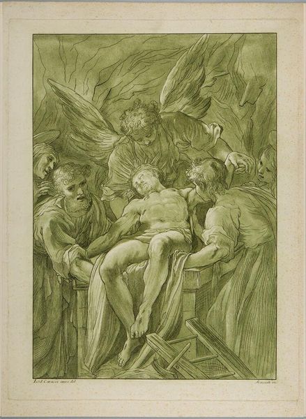 John La Farge created this study using graphite on paper for a memorial window at Trinity Church in Buffalo, New York. The composition is dominated by the figures of angels. In Christian iconography, they serve as intermediaries between heaven and earth, often depicted with wings to symbolize their divine mission. In this drawing, an angel is sealing the servants of God. This gesture echoes ancient sealing rituals, signifying protection and divine favor. We see this in ancient Near Eastern art where seals served to authenticate documents and protect property. Here, the act of sealing takes on a spiritual dimension, offering solace and reassurance. Consider the emotional weight of this image, it serves as a powerful reminder of faith and resilience. The symbol of the angel has persisted through time, embodying hope and transcendence across cultures.