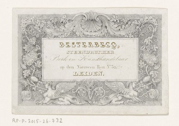 This calling card, made by Louis Salomon Leman in Amsterdam, showcases the artistry of stone printing, or lithography. It's a process where an image is drawn on a stone with a greasy crayon, then treated with acid. The greasy areas repel water, so when ink is applied, it sticks only to the drawing, allowing multiple prints to be made. Lithography enabled the mass production of images, transforming visual culture in the 19th century. The card's design, with cherubs and decorative script, speaks to its function: to impress potential clients with Leman's skill and the modernity of his printing technology. The level of detail suggests a highly skilled artisan at work, someone attuned to the nuances of the stone and the chemical processes involved. This card embodies a moment when craft and industry converged, changing the landscape of art and commerce. It reminds us that even something as small as a calling card can carry significant cultural weight.