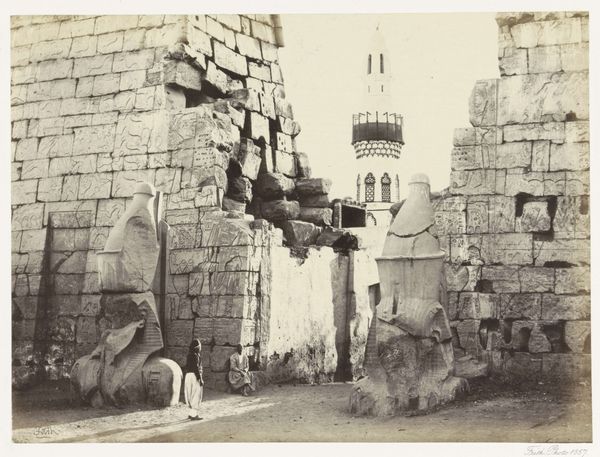 This photograph by Félix Teynard captures the entrance of the Mosque at Souâdj, Tomb of Mourad Bey, sometime in the 1850s. This image, like many early photographs from that era, documents the ways in which the European colonial powers perceived the places they visited. It's telling that Teynard chose to focus on the architecture of the mosque and tomb, rather than the people who used the space. The way he frames the building, with the stark, weathered walls and the shadows cast across the courtyard, presents a romanticized view of a distant and ancient land. Considered as part of the wider visual culture of the French colonial project in Egypt, this photograph reveals the power dynamics at play. To truly understand this photograph, we need to investigate how the institutions of art and science worked together to create a particular vision of the East, one that served the interests of empire.