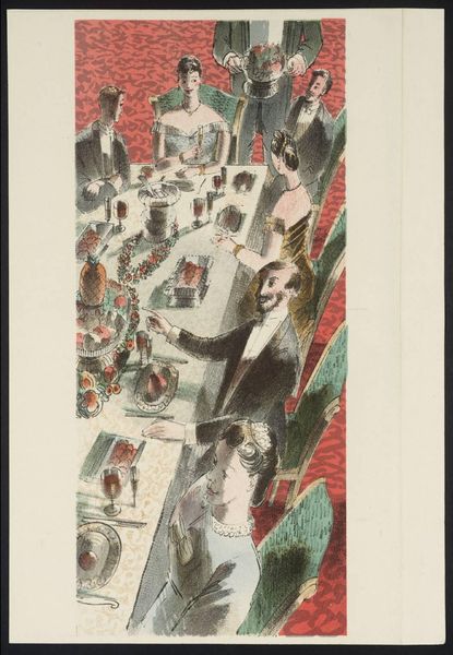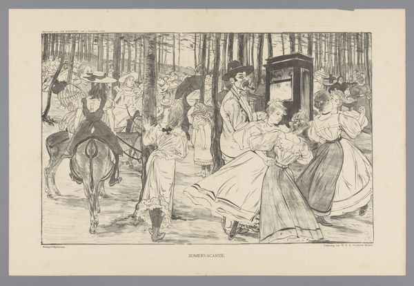 Fernand Siméon created "Bric-A-Brac" in 1922, a print that captures a fleeting moment of Parisian life during the interwar period. This was a time of immense social change and cultural effervescence. Siméon offers us a glimpse into a bustling flea market, a microcosm of Parisian society where different social classes converged. The print reveals the sartorial codes of the era, hinting at the gendered expectations placed on women. The women are preoccupied with the act of consumption while the man is there to observe. The "bric-a-brac," or odds and ends, suggest the allure of the past, as well as a desire to acquire and display objects that signified taste and status. Siméon's work reflects a society grappling with its identity in the wake of the war. There is the tension between tradition and modernity, commerce and culture. The print asks us to consider the relationships between consumerism, identity, and the performance of social roles in the urban landscape.