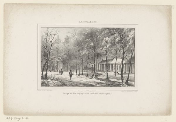 Isaac Reijnders Sz. made this print of Leeuwarden Cemetery sometime in the mid-19th century. The image offers a glimpse into the 19th-century Dutch attitudes toward death and civic life. Looking closely, we see a serene, orderly scene that reflects the values of the Biedermeier period. The cemetery is not a wild, overgrown space, but a carefully planned landscape. The architecture is simple and classical, fitting with the taste of the period. The people walking appear calm and composed, perhaps suggesting an acceptance of mortality or the social importance of mourning. The cemetery's design as a public space, and the print's circulation, implies the existence of a shared culture around death. To understand this image, one might consult local histories of Leeuwarden or records from the cemetery itself. Through such resources, we can start to explore the social and cultural rituals of the time.