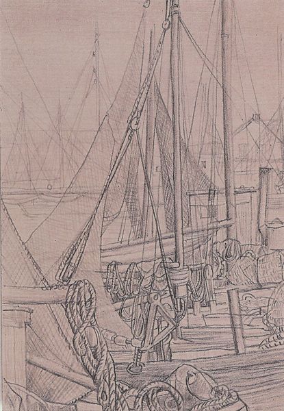 Editor: Here we have Martinus Rørbye's 1840 pencil drawing, "Parti af havnen i Palermo" – a View of the Harbour in Palermo. It’s housed at the SMK, the National Gallery of Denmark. It strikes me as quite observational, almost journalistic in its portrayal of everyday life by the sea. What do you make of it? Curator: Observational, yes! I am drawn to the stillness within the scene, the understated narrative humming quietly under the surface, a palpable sense of a specific moment captured. Perhaps this wasn't intended as a grand statement, but a collection of whispers and subtle encounters. The way he has used the pencil, too, seems like he is feeling around the edges of memory. Doesn't it feel as if he's remembering the light? What stands out for you most, apart from its journalistic feeling? Editor: I think the candidness. Everyone seems to be caught mid-action. Is that typical of the Romanticism movement? I always associate it with really dramatic, posed scenes. Curator: Ah, a common misconception! Romanticism wasn't *just* about the grandiose; it also celebrated the intimate connection with nature, and that often involved simply observing life unfolding around you. Rørbye wasn’t afraid of a more understated beauty. He sought truth in the everyday, in fleeting glimpses. He lets us glimpse the soul of Palermo through the gentle application of pencil. He captures it by observing the dance between light and shadow. I am now wondering if it reminds us of the impermanence of any single, pure viewpoint...What do you think about that? Editor: Hmmm, I didn't catch that at first but it’s something I'll keep in mind. The details are what truly convey his intention and what really sticks with me! Curator: Exactly! It makes me want to walk around Palermo, just looking at the everyday scenes. It seems the deepest truths lie hidden in those little details.