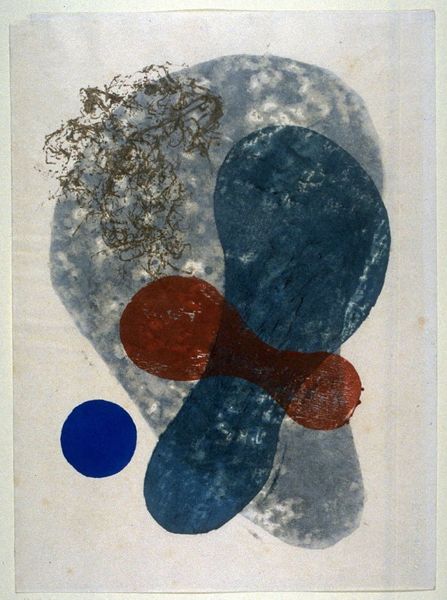 Curator: My immediate reaction is that these floating orbs remind me of planets... but melancholic ones. Editor: I can see that. Well, let’s orient our listeners. What we're looking at is Edvard Munch's watercolor and drawing piece, "The Sick Eye," created around 1930. The artwork shows six vaguely circular forms spread across what seems to be paper. Curator: Paper and watercolor— such fragile materials. Do you think it suggests a sort of vulnerability of sight itself? These swirling masses don't really seem representational, more like… abstractions of how it feels to perceive the world when ill. Editor: I think so. Notice how in some of the orbs, there appears an inner "empty" core surrounded by colors such as blue and violet— but in others, the entire area seems to pulsate with darker shades. There's an imbalance here. Curator: True! The variation in the density of pigment must tell something about Munch's approach, or even, about his psychological state while producing the drawing... The one at the bottom in the middle is almost entirely pale except for the small drawing of the bird... almost ethereal. Editor: I find that particularly striking too. It really speaks to how even in times of illness, moments of clarity, or perhaps beauty, manage to push through. The inclusion of a recognizable shape such as the bird within the nebulousness may be intentional. It might be about a longing to see the world in clarity or the simple moments when one is more connected with the natural world. Curator: Interesting how a medium usually employed for lightness takes on such a weight, it's not at all airy. It truly captures a bodily sense. Editor: It shows the range of how this artistic means might communicate varied themes. I come away understanding better how an expressionist such as Munch wasn't just reflecting an inner emotional turmoil, but deeply considering the tools at his disposal in production. Curator: Well, my perception of Munch and watercolors won’t be the same from now on... it all flows a bit differently for me, you know?