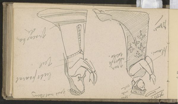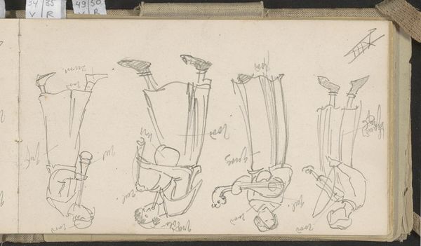 Editor: This pencil drawing by Antoon Derkinderen, "Three Female Musicians, After an Example from the Thirteenth Century AD," dates between 1892 and 1901. I find its rough sketchiness almost contradictory to the traditional subject matter. How do you interpret Derkinderen's choice to depict this scene in such a manner? Curator: That’s a great observation! The academic art style combined with this almost unfinished sketch-like quality points to an interesting tension. We often consider academic art as rigid and formal, focusing on perfected depictions. Here, Derkinderen presents something different. Do you think his choice to reference the 13th century is purely artistic, or does it indicate a commentary on the role of art institutions and tradition itself? Editor: Well, knowing this was created near the turn of the century, could it be about revisiting or even challenging accepted norms through art? Like, going back to the roots to maybe… redefine the future of art? Curator: Precisely. It's about invoking a specific period, imbuing it with new life and contemporary concerns. Why these musicians, and why reference a bygone era? How did such genre painting contribute to or resist broader cultural and social changes? Editor: It almost feels like he's inviting a conversation across time periods about women in art and music. Something that can be reinterpreted in every age and culture. Curator: That’s insightful! His choices, whether intentional or subconscious, contribute to the ongoing dialogues around gender, representation, and historical influence that still occur today within galleries and museums. Editor: So, it seems even what appears simple in execution invites much more debate once you view it as part of its place in the broader historical moment. Curator: Exactly. It reminds us to consider the public role of art: to foster dialogue and constantly examine the politics inherent within images, how the past informs the present.