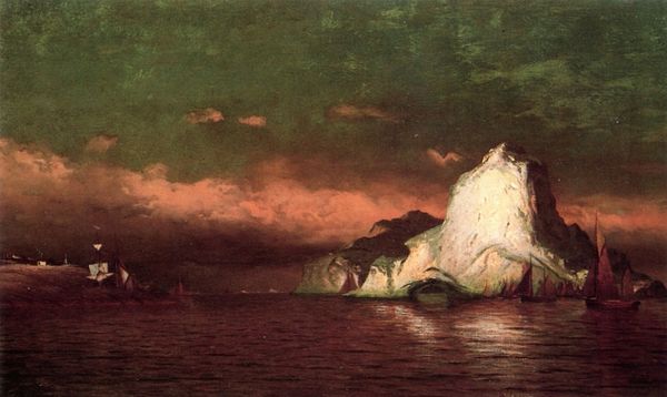 Editor: Ivan Aivazovsky's "Storm," painted in 1861, definitely evokes a feeling of chaos. The way the light catches the waves, contrasting with the dark sky and looming cliffs, creates a powerful, almost overwhelming scene. How do you interpret this work within the context of its time? Curator: Considering Aivazovsky's "Storm" through a historical lens, it reflects the Romantic era's fascination with the power of nature, but it also engages with Russia's own self-image. Remember that Russia at this time saw itself as a great naval power. How does this painting contribute to that narrative? Editor: Well, the dramatic depiction of the storm could symbolize the challenges and resilience of the Russian navy, or perhaps a broader statement about humanity's struggle against forces beyond our control. It's also interesting how the vastness of the sea diminishes the figures in the boat. Curator: Exactly. This sense of human insignificance in the face of nature was a common theme in Romantic art, but here, Aivazovsky potentially links it to Russia's geopolitical ambitions and struggles. Consider, also, the audiences. How might this scene of peril be viewed by the elite versus everyday citizens? The answer provides fascinating clues about the public function of this type of history painting. Editor: That's a good point, the reception would definitely vary across different social classes and their connection to maritime power. I hadn't considered how deeply entwined art could be with national identity. Curator: Indeed, art is rarely created in a vacuum. Examining "Storm" reveals not only Aivazovsky's mastery of capturing light and movement but also the complex interplay between artistic expression and political ideology. It underscores how seascapes could function as potent symbols of national aspiration. Editor: It’s fascinating to see how historical context completely reshapes how I see this painting, now appreciating its deeper resonance. Thank you!