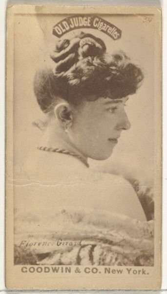 This is a promotional card made by W. Duke, Sons & Co. in the late 19th or early 20th century, featuring Clarabel De Puyster to advertise Cross Cut Cigarettes. These cards were produced and distributed during an era of rapid industrialization and the rise of consumer culture in the United States. Tobacco companies sought innovative ways to market their products. The cards often featured popular actresses, athletes, and other celebrities, linking them to the aspirational lifestyle associated with leisure and success. By using the image of a refined woman, smoking was being marketed to new social classes, who would have previously been excluded. The format is reminiscent of the older tradition of the calling card, a mark of social distinction. Further research into the archives of advertising history would help us understand the social and cultural role of these cards within a society undergoing enormous change.