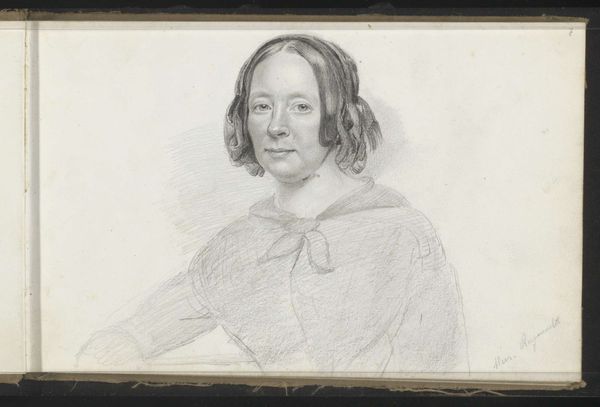 This is a photoreproduction of a drawing of a woman's portrait, most likely made by E. Kirchner & Comp. The drawing presents a composition of ordered strokes that define the woman’s features and clothing. A muted palette and soft gradations in tone create a subdued emotional atmosphere. The use of line is particularly strategic; notice how the fine, precise lines delineate the facial features versus the looser, more gestural lines of the dress. Here, form becomes a carrier of cultural meaning. The subject's demure posture, framed by the stark contrast of a white collar against a dark dress, creates a study in contrasts: light and shadow, restraint and expression. This interplay encourages us to question the societal roles and expectations placed upon women. The portrait challenges fixed meanings and asks us to consider how representations can reinforce or destabilize established social values. This invites us to engage critically with art's role in shaping our understanding of identity and representation.