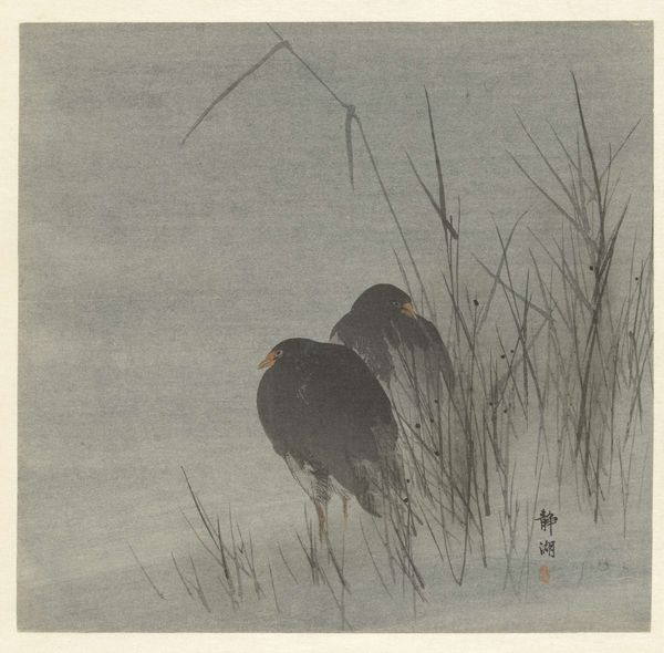 This woodblock print, "Ships at Night," was created by Tsukioka Kôgyo, sometime before his death in 1927, and is held at the Rijksmuseum. The image immerses us in a nocturne dominated by muted tones and stark contrasts. The composition, defined by vertical masts and the angular hulls of the ships, evokes a sense of stillness, while the water below suggests movement. The tension between the static and dynamic is further complicated by the stark tonal contrasts. Kôgyo uses a semiotic system of signs to heighten the emotional impact of the scene, as well as the cultural codes which inform the artwork’s making and reception. A spot of orange pierces through the darkness, which may be interpreted as the light from a distant fire. The spatial ambiguity invites a consideration of perception and representation. The artwork challenges fixed meanings, asking us to engage with new ways of thinking about space. The formal qualities of the artwork function aesthetically, but also as part of a larger cultural and philosophical discourse.