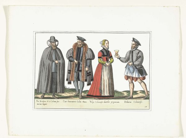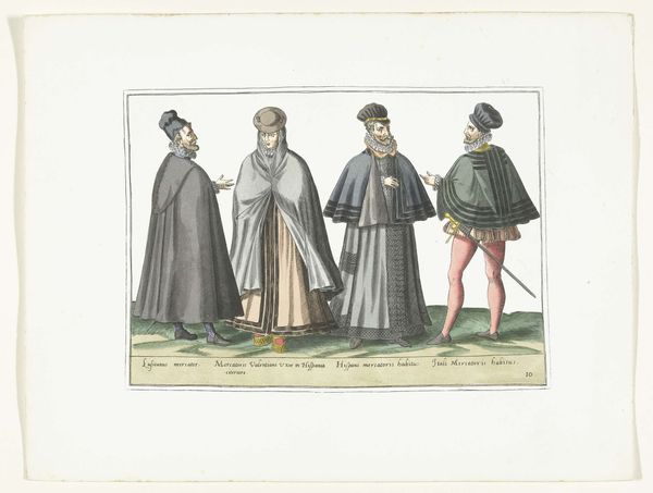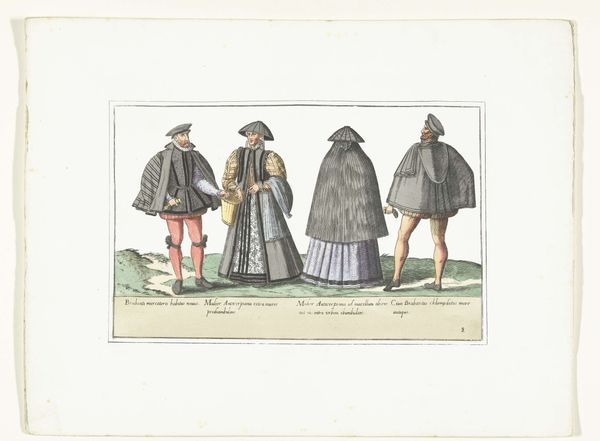 This engraving, circa 1580, depicts three women and a man, adorned in what was then German fashion. Note how the clothing acts as a potent signifier of identity, marking not just status but also geographical and cultural belonging. The capes worn by both men and women, for instance, echo the protective cloaks found in earlier religious art, shielding the wearer. Consider the Madonna of Mercy, where the Virgin's cloak shelters the faithful; here, the capes serve a similar function, warding off not evil but the gaze of outsiders, preserving modesty and signalling social standing. Even the colour choices, seemingly simple, vibrate with cultural weight. The shift in colour from the vibrant robes of the Renaissance to these more muted tones mirrors a broader cultural move towards restraint, a visual manifestation of evolving social mores. These are not mere garments but carriers of history, echoing through time, each fold whispering tales of cultural memory.