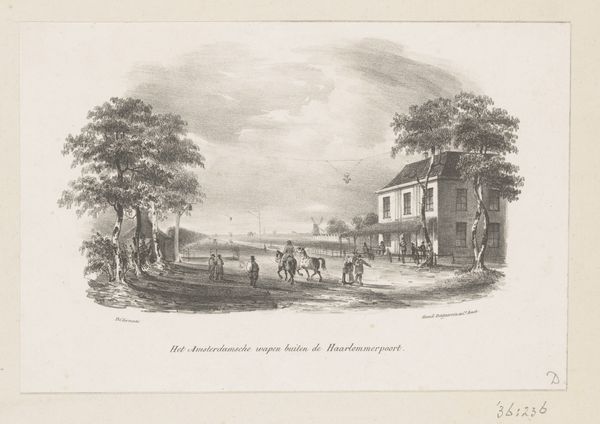 Editor: So, here we have "Hotel De Zwaan in Leiden," an 1843 engraving by Wilhelmus van Groenewoud, currently held at the Rijksmuseum. What immediately strikes me is the detailed depiction of everyday life, but I’m curious – how do you interpret this work through a more critical lens? Curator: Well, look closely at the engraving technique. Think about the labor involved in creating this reproducible image. Each line, each tonal shift, meticulously etched. This wasn't just about aesthetic beauty; it was about democratizing imagery, distributing a particular view of Leiden’s social fabric. Consider who had access to these prints, and what role that access played in maintaining social structures of the time. Who is being represented in this print? Who is absent, and why? Editor: That’s a great point. I hadn't really considered the process in relation to the content so deeply. The detail makes the scene appear somewhat documentary. Do you think the labor relates to the commodification of everyday life, too? Curator: Exactly. This image becomes a commodity itself, available for purchase, consumption, and ultimately, reinforces certain values about the built environment and how people were positioned within that setting. Furthermore, it could serve to promote leisure activities like a stage coach trip to "Hotel de Zwaan". Now look at the depiction of the stage coach for example; what’s being transported besides the apparent passengers? Editor: In this context, one could argue it’s a snapshot of a consumerist culture emerging in that moment... transporting people and associated privilege. Curator: Precisely. How does focusing on the materiality and reproduction change your understanding of the piece, versus a more formal analysis? Editor: It moves it beyond just being a pretty picture and links it to economic and social realities, making the work much richer. I'll never look at engravings the same way.