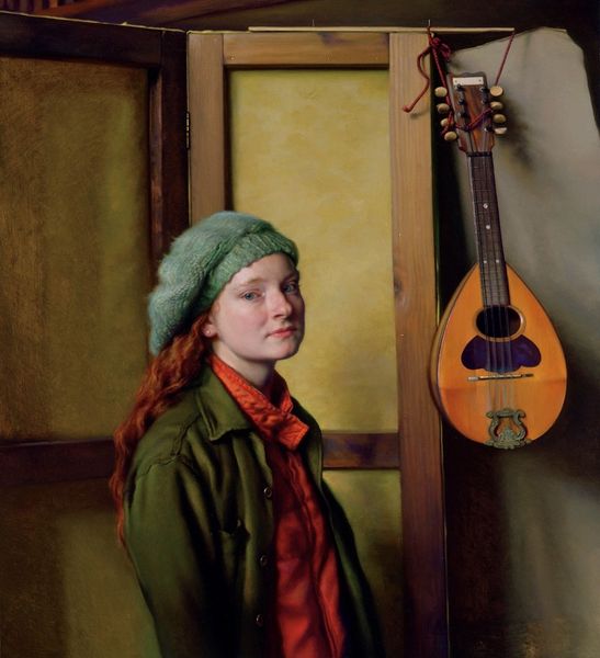 Dmitri Zhilinsky created this painting, "Portrait of Pavlova with guitar," using traditional oil paints. Look closely, and you’ll notice that the space is filled with objects of skilled making: a carved wooden sculpture and the tools used to create it, a carefully-made guitar, and even Pavlova’s knitted sweater and boots. Each of these objects embody skill, practice, and even a kind of labor. The sculpture, rendered in a somewhat modernist style, suggests that Pavlova and Zhilinsky were part of a creative community that embraced both art and craft. The tools on the table, mallet and chisels, imply a respect for materiality and the hands-on work of shaping wood. Even the guitar, an instrument of music, can be viewed as a crafted object. By bringing together these elements, Zhilinsky blurs the lines between the fine arts and the applied arts, and emphasizes the importance of skill and making. It's a reminder that artistic expression is not limited to the canvas, but can be found in the everyday objects that surround us.