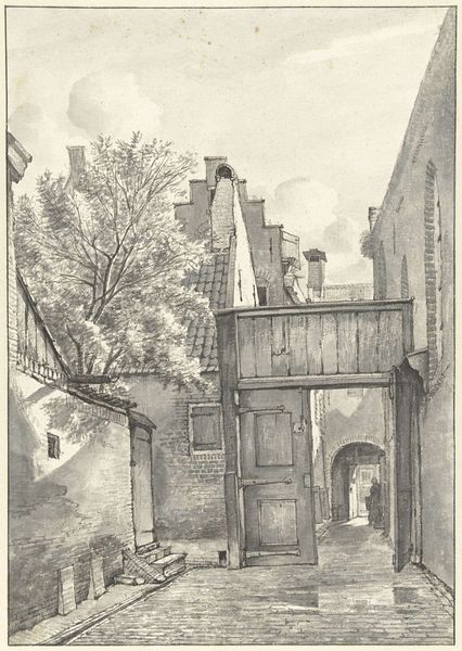 James Tissot’s drawing, A Part of the Ancient Arch Called Ecce Homo, now at the Brooklyn Museum, captures a street scene with remarkable detail using pen and ink. The composition is structured by strong vertical lines of the buildings which create a narrow corridor effect, drawing the eye through an archway. Tissot's intricate linework meticulously renders the texture of stone and brick, conveying a sense of depth and age. The arch itself acts as a framing device, offering a glimpse into the cityscape beyond. The monochromatic palette emphasizes form and shadow, evoking a somber mood. This drawing invites us to consider how architectural spaces can embody historical and spiritual significance. Through careful rendering, Tissot transforms a simple street into a contemplative scene, prompting reflections on the past. The drawing's formal qualities underscore the weight of history embedded within the stones.