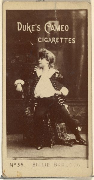 This card, number 96 in a series by Duke Sons & Co., presents Billie Barlow, an actress, promoting Cross Cut Cigarettes. Look closely, and you will see Billie posed in a masculine manner; her attire and posture evoke the confident swagger often associated with male figures in theater. Consider how this image echoes throughout history. In earlier eras, we find instances like cross-dressing theatrical performances, where gender roles are deliberately blurred or reversed. Think of Shakespearean plays, where male actors often played female roles, challenging and playing with the audience's perceptions of identity. This card is engaging with the theme of crossing boundaries, whether of gender or performance. The deliberate ambiguity in the image invites a deeper psychological interpretation. Collective memory and subconscious associations with gender fluidity and performance could influence how viewers interpret the image. There is a tension here, between the expected and the unexpected, that perhaps mirrors society's shifting attitudes toward gender roles. The act of dressing or posing in opposition to expected gender roles has resurfaced, evolved, and taken on new meanings throughout history.