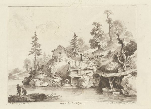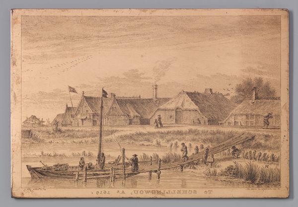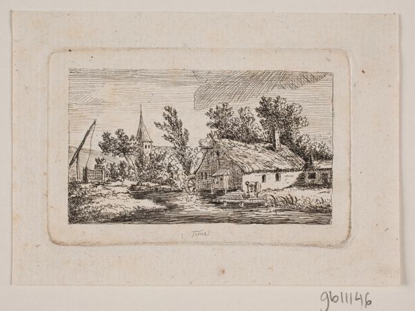 Editor: So, this is "Village Scene with Pond," an engraving from 1782 by Cornelis Brouwer, housed here at the Rijksmuseum. It's… pleasant, I suppose. Very detailed, lots going on. All the little figures working, the animals… it feels very grounded in a specific time. What strikes you most about it? Curator: The density of symbols and social echoes resonates deeply. It’s seemingly just a genre scene, a snapshot of everyday life. But consider the placement of the church in the background; it looms, yet it's integrated into the village fabric. It's both a symbol of spiritual authority, and a silent witness to the daily lives of these people. Does the placement speak to you? Editor: I hadn't really thought about it like that… The church sort of blends in. Curator: Precisely! That visual blending represents a harmony, perhaps even an idealised one, between the earthly and the divine. The activities by the pond – people working, animals drinking – echo an ancient theme of human connection to nature. Then look closer, at the light and shadow… Do they soften the burdens of life? Editor: It’s…gentle. It doesn't feel harsh. It's like a memory of simpler times. Curator: Exactly! That gentle light, almost nostalgic, highlights an underlying current – a collective cultural memory being constructed even as the scene unfolds. What seems ordinary is loaded with symbolic meaning about community, faith and work, perceived at a specific historical moment. It’s powerful, isn't it? Editor: Definitely gives me a lot more to think about. I went from "pleasant" to... a coded message from the 18th century. Curator: In art, things are not always what they seem. By understanding the language of symbols, we begin to unveil layers of human experience embedded within.