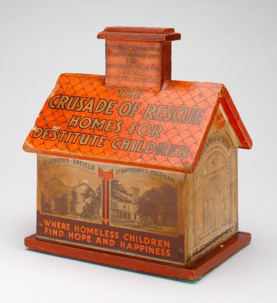Editor: This handcrafted wooden still bank, in the shape of an Arizona Bank delivery truck from 1979, feels incredibly nostalgic and quaint. Seeing this piece in a museum makes me wonder about its place, though. How do we move from seeing this as a simple carving to interpreting its larger cultural context? Curator: It’s interesting that you call it nostalgic. Can you elaborate on what evokes that feeling? Is it the specific design of the delivery truck or maybe the connection to a seemingly simpler financial landscape in the United States? The image invokes themes of capitalism for a child that we can reflect on and analyze now. Editor: It is probably both of those. The simplicity makes it appear almost innocent but I guess its purpose of holding money connects it to larger economic structures that are now almost always present in contemporary art. Curator: Precisely. Think about what this object would have represented in 1979. On one level, a cute wooden toy for teaching children about money management. However, as historians, we must examine who had access to banks in the past, which groups were excluded, and how advertising like this played a part in normalizing those disparities. It may reflect a simplified and possibly sanitized image of finance that needs interrogation. How effective are these banks now for teaching money management to future generations of citizens? Editor: That gives a whole new weight to this small carving. I hadn't thought about access to banks or who this was even intended for back then, as opposed to now in a museum. Curator: Indeed. Looking at everyday objects like this lets us unravel larger socio-political narratives. They often provide valuable, accessible insights that are just below the surface, don’t you agree? Editor: Absolutely. It highlights the role that financial institutions have in children's lives, shaping perspectives on saving, spending, and even their place in the larger economy. Curator: Exactly, and museums provide that crucial space for these re-evaluations. Now I'll always remember it differently!