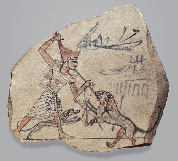 Curator: This is a drawing from ancient Egypt called "Artist's Gridded Sketch of Senenmut," dating back to 1458 BC. Editor: Immediately, I'm struck by its starkness. The pale stone fragment contrasts sharply with the precise, dark lines of the portrait. Curator: Exactly! The piece is incredibly informative about artistic practices in that era. The grid is lightly sketched out on the stone—likely limestone—to proportion and create the final painted relief of Senenmut. Pencil on paper hadn't been invented yet! Editor: And Senenmut himself…he was such an important figure, the architect and official who served under Hatshepsut. The stylized profile immediately brings to mind power, order, but also a hint of introspection. Notice how the artist has depicted the eye? It's almost…vulnerable. Curator: The labor is really important to consider, as it speaks to this piece’s inherent social context. The drafting would have involved many artisans, not just the named artist, each contributing to the overall production of royal imagery and state ideology. And there would've been careful planning involved for transport, all those logistics... Editor: It speaks volumes about their understanding of visual representation. I can also see that the unfinished nature heightens that intimacy somehow, doesn't it? The image carries that incredible cultural weight through its very imperfection. The artist used very simple, effective visual language in this sketch. Curator: And look closely: the stone is chipped and worn. These subtle imperfections evidence how objects evolve. The grid isn’t perfect, the lines aren’t perfectly straight; each element reminds us this wasn't mass production. There's hand craftsmanship and a human connection to the material at every point of its production. Editor: Looking at the lines forming the wig and the almost wistful expression makes me reflect on memory, even the endurance of images across millennia. His image lives on here because he lived so prominently during his time. It almost invites a modern, empathetic reading, too, you know? Curator: Yes, and considering the materials reminds us of what it was and what it stands for in its historical period. Thank you, what great thoughts. Editor: Indeed, what a powerful portrait and wonderful window into Senenmut's place and influence.