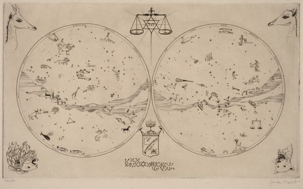 Editor: This is "Plattegrond van twee versterkte fortificaties," or "Plan of two fortified fortifications," an engraving by Hendrick baron van Ruse van Rysensteen, dating back to 1654. The sharp, angular geometry contrasted with the sketched landscape is striking. What catches your eye about this print? Curator: The stark dichotomy between the scientific exactitude of the fortifications and the seemingly "natural" landscape is certainly intriguing. Observe the intricate lines, the meticulous detail in rendering the fortresses. Consider, too, the way these abstract geometric shapes interact. Do they not almost create their own language, a coded system of defense and power? Editor: Absolutely, it's like two different realities occupying the same space. I'm curious, how would a formalist approach understand that contrast, that language? Curator: By deconstructing its visual vocabulary. The geometric rigidity of the forts, achieved through precise engraving, speaks to order and control, a visual manifestation of power. Consider how those lines form repeated shapes: triangles, squares, pentagons – elements used to contain space. Now contrast that to the lower third; notice the delicate etching used for the landscape. Editor: The natural world seems softer, less defined. Curator: Precisely! Note the more organic, flowing lines describing trees, hills, and structures in comparison. In semiotic terms, the landscape can be viewed as 'nature', whilst the geometric shapes represents the intrusion of 'culture'. The tension then created between order, security, and nature. Editor: So, it's a visual dialogue between opposing forms. The calculated geometry of power against the flowing freedom of nature? I'll never look at architectural drawings the same way. Curator: Indeed. It is a successful visualization.