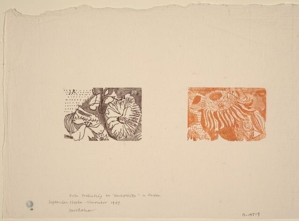 Imre Reiner created this print, titled "Der Herbstblatter," meaning "Autumn Leaves," at an unknown date using an unconfirmed printing method. The botanical subject matter, divided into two separate blocks, offers a stark visual contrast. Reiner was a Romanian-born artist, graphic designer, and writer who spent much of his career in Switzerland. Without a date for this work, it is difficult to say how it comments on the social structures of its time, but we can be sure that his European environment plays a key role. Switzerland, with its neutral stance during both World Wars, attracted many artists during periods of conflict and became known for graphic design. To understand the art of Reiner more deeply, it would be useful to consider the history of botanical illustration, and the cultural significance of the rose in different periods and locations. This kind of contextual research helps us to see art as something rooted in its social and institutional moment.