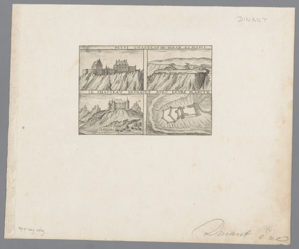 Editor: This is "Bombardement van Venlo, 1793" made between 1793 and 1795 by Cornelis Bogerts. It’s an engraving on paper housed here at the Rijksmuseum. The tones are muted, creating a somewhat bleak, but dramatic depiction of the bombardment. What compositional elements strike you most when you view this? Curator: Immediately, the arrangement of light and shadow. Notice how the artist uses contrasting shades to depict the billowing smoke and explosions against the relative calm of the sky. The interplay suggests chaos erupting within an otherwise orderly composition, yes? How does this relate to other work from this artist? Editor: Yes, definitely. It creates a very dramatic feel! It's interesting how the title at the bottom is placed, creating sort of a cut-out composition. Is there any reason Bogerts chose to put all of the action at the top of the piece, almost as if he’s framing it? Curator: Consider the line work. The engraver’s precise lines create a sense of depth, drawing the viewer’s eye from the foreground, where we have legible inscription, towards the more ambiguous, turbulent scene unfolding in the background. Observe, too, how the bridge acts as a horizontal divider. It offers an interval. Does this reinforce a tension between observation and participation? Editor: That's an insightful way of seeing it. I hadn't considered how the engraving itself becomes a mediator. Curator: Precisely. The visual arrangement highlights a tension intrinsic to the scene, doesn't it? By looking at structure, we appreciate both technique and content. Editor: Thanks for pointing out these observations. It really makes me appreciate the construction, rather than just the depicted historical event.