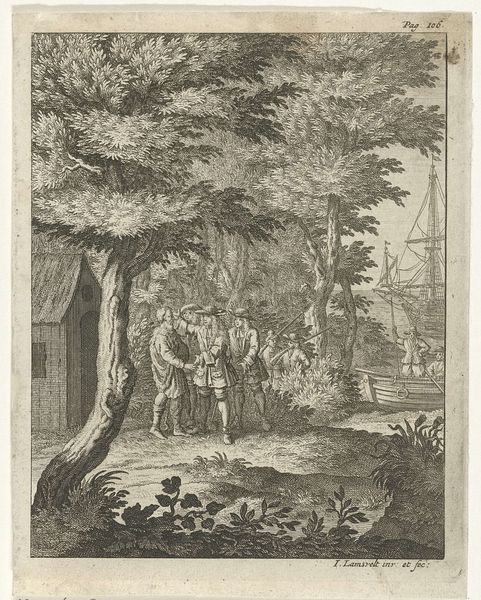 Curator: I see crowds, pomp, and a kind of serene takeover brewing in this one. Editor: Indeed. What you're sensing there is history in the making, quite literally. This print, crafted sometime between 1722 and 1784 by Simon Fokke, commemorates "The Reception of William III in England, 1688." It’s a combination of etching and engraving, capturing a pivotal moment. Curator: The level of detail for such a small scale! Look at the bridge's reflection in the water. It’s not just documenting an event; there’s a genuine attempt to evoke the atmosphere of the occasion. Is it the visual equivalent of "historical fan fiction," shaping collective memory? Editor: Well, Simon Fokke certainly had an agenda. Prints like this, widely circulated, played a crucial role in shaping public perception. Consider the context. By the 18th century, the "Glorious Revolution," as the English called it, had become a foundational myth, and images such as these reinforced the legitimacy of the new regime and, in Fokke’s case as a Dutch artist, perhaps celebrated a Dutch figure’s ascent on the English stage. Curator: A subtle flex by the Dutch, maybe? Beyond the political messaging, there's a definite Baroque theatricality. It feels almost stage-managed, the way everyone is arranged, the light catching the important figures... There's a bit of swagger! Editor: Precisely! The Baroque love of spectacle is evident, despite the medium's limitations. It underscores your "fan fiction" idea. It wasn't about photographic accuracy. The print transforms a messy political event into a neatly packaged narrative, accessible to everyone, not just the elites who lived through it. Curator: And what narrative does it offer now? It almost feels...quaint? There is almost an element of national pride in this detailed rendering of a powerful transfer. Editor: Today, prints like Fokke’s serve as crucial historical documents. They tell us not just about the event itself but also how that event was consciously constructed and disseminated. So, beneath the seemingly quaint veneer, it offers insights into power, propaganda, and the making of historical memory. Curator: Food for thought indeed! So much story etched into a tiny plate... Editor: Absolutely, and now that you will continue your journey through the gallery, this work hopefully inspires new paths and reflection on all kinds of cultural, social, and historical impacts on works of art!