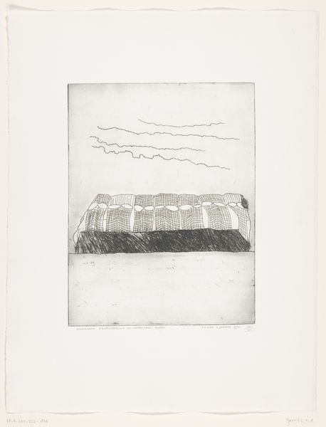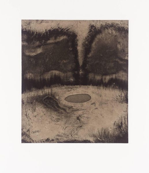 Editor: This untitled piece by Anish Kapoor features a stark contrast of dark and light, creating an almost ethereal landscape. It's quite textural. What do you see in the composition? Curator: The artist's manipulation of tone and texture is indeed striking. The work emphasizes the interplay between positive and negative space, with the dark masses forming a focal point against the lighter ground. Note the materiality, the granular quality achieved through the medium itself. Editor: So, the texture itself is as important as the landscape it depicts? Curator: Precisely. The artist prioritizes the abstract qualities of form and surface over representational accuracy. We are invited to consider the relationships between the visual elements. Editor: That's a fascinating way to look at it. I appreciate the emphasis on the material qualities and the visual relationships within the work. Curator: My pleasure. It enriches the experience when we move past representation and start decoding the language of form.