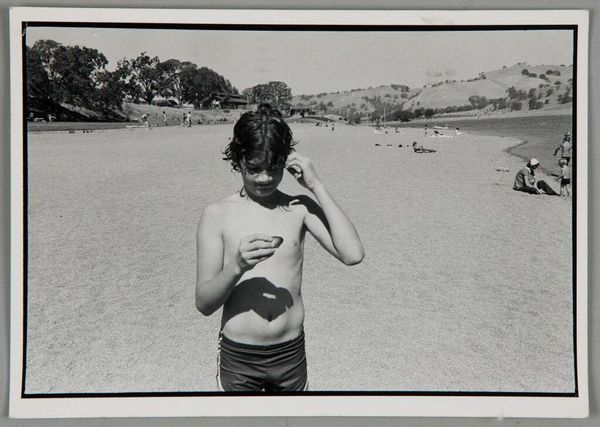 Editor: This black and white photograph, Untitled (Sausalito) by Bill Dane, captures three figures by the water. There's a raw, almost confrontational energy to the woman on the left. What do you make of the emotional weight of this image? Curator: The woman’s expression is quite striking. What visual cues suggest to you that she is in distress? Are we seeing a contemporary Pietà, perhaps, where the conventional symbols are replaced by modern anxiety? Consider her posture, the gesture of her hands, the way she’s isolated from the other figures. Editor: I see. The contrast between her and the more stoic figures beside her definitely amplifies that feeling. It is a very modern take, for sure. Thank you! Curator: Indeed. The photo evokes a sense of our shared emotional heritage. It’s a powerful reminder of how images can carry layers of meaning across time.
