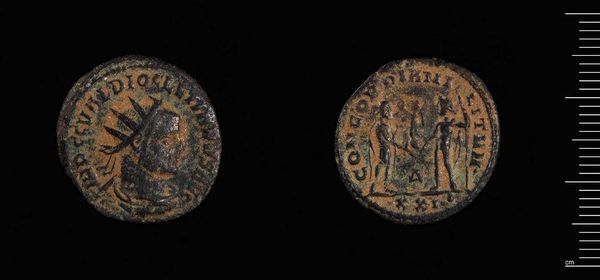 Curator: Here we have a Sestertius of Maximinus I, a bronze coin minted to honor the Roman Emperor himself. Editor: It's incredible how this small, worn object carries such weight. I feel transported back to the sheer force of the Roman Empire just by looking at its rough edges and weathered surface. Curator: The formal composition places Maximinus' portrait on one side and a symbolic figure on the other, embodying power and legitimacy. Note the inscriptions, meticulously etched, they served to disseminate his image and authority. Editor: I'm struck by the contrast between the idealized image of power and the reality of its creation – the brute force, the sweat, the political maneuvering that went into minting even this one coin. It’s a heavy piece. Curator: Indeed, it is. Each line, each curve, tells a story of an empire striving for permanence. Editor: Makes you wonder, what stories will our coins tell someday?
