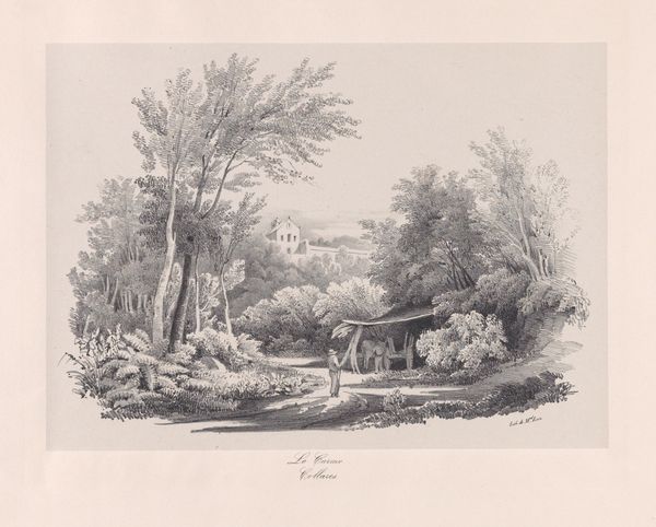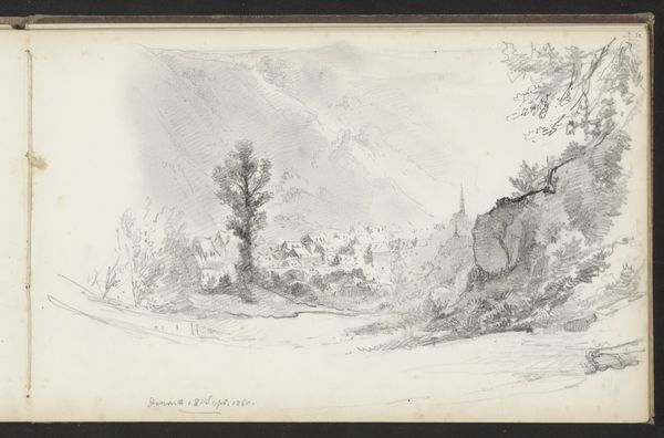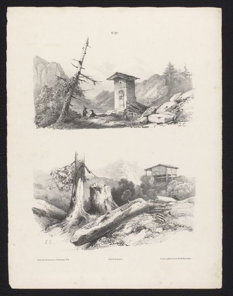 Editor: This is "Twee landschappen met een huis aan het water," or "Two landscapes with a house on the water," by Jules Coignet, created around 1831 using ink and pencil. It feels very peaceful and almost… idealized. What strikes you about these two landscape drawings? Curator: What strikes me immediately is the deliberate contrast. We see Coignet playing with different types of landscapes that were valued, particularly at that time, through the Romantic lens. The top image presents an almost idyllic scene of harmony, potentially reflecting the bourgeois desire for nature as respite. Whereas the bottom feels more enclosed, a common image in the popular illustrated journals of the period, representing the working life connected to the landscape. Does the depiction change how we view these scenes, or perhaps instruct us on how to think of class in these landscapes? Editor: So the top scene is an idealized escape, while the lower connects more to labor. Is this like the contrast we see in poetry between city and country? Curator: Yes, except visualized here in two distinct modes within the same frame. Consider also how these images might have circulated; this work would have likely been reproduced for mass consumption, subtly shaping perceptions and potentially reinforcing social hierarchies. Think of the art institutions that promoted such imagery and the collectors who acquired them. What narratives were being prioritized, and whose voices were amplified? Editor: That's fascinating! So the choice of landscapes, how they were drawn, and how they were circulated all reflect and shape society. It’s a really complex interplay. I'll definitely think about that next time I see a landscape drawing. Curator: Exactly. Seeing these not just as pretty pictures, but as cultural documents, is crucial.