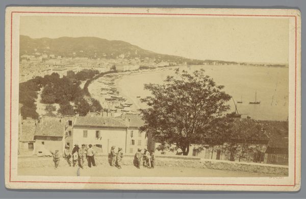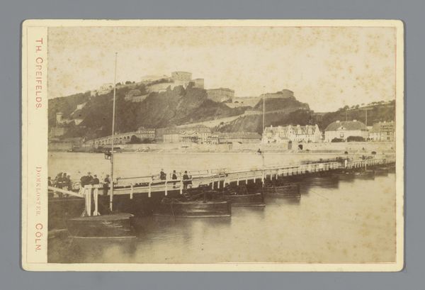 This photograph, "Gezicht op Saint Aubin op het eiland Jersey" by Thomas Tibbles presents us with a landscape rendered in tones of sepia. The composition is structured around a strong horizontal division, establishing a dialogue between the solid architecture of the town and the fluidity of the water. The lines of the buildings and the embankment create a sense of order, while the hill in the background offers a natural contrast, its curves softened by terraced slopes. This interplay between the constructed and the natural introduces a semiotic tension, where the photograph functions as a cultural record and an aesthetic object. Consider how the texture of the water and the sky work together. The photograph invites us to consider the relationship between representation and reality, between the document and the artifice.