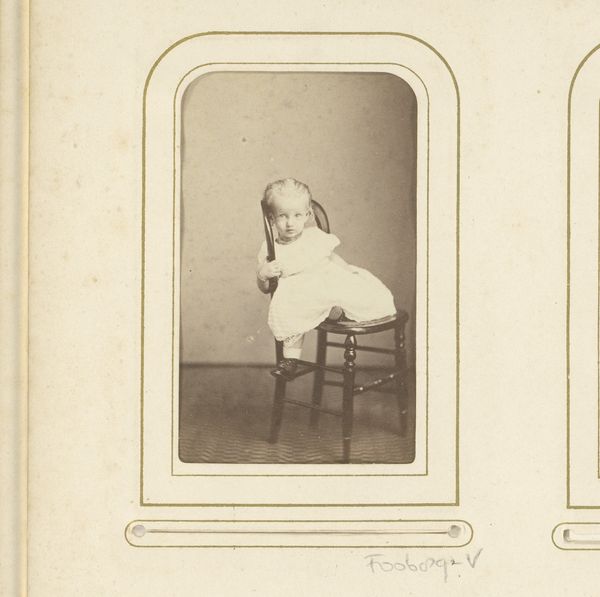Curator: My eye is immediately drawn to this sense of quiet intimacy. It’s as if we've stumbled upon a secret, personal moment. Editor: Indeed! This photograph, whose title translates as “Photo reproduction of Fairytale Sceneries”, seems to capture that essence. It was produced sometime between 1870 and 1890, and is created through the gelatin-silver print process. What is striking is the construction of childhood within these years, both culturally and historically. Curator: Yes, a cultural snapshot! I get a profound sense of wistful, naive longing from her posture, her absorbed gaze. And that light! It really elevates the ordinary to something almost sacred. Do you think that's a projection on my part, considering, that it is just a child in front of an obvious prop? Editor: Possibly. Considering its creation period, photography had just entered the medium, but it carried enormous representational power. Note how the staged studio environment constructs and controls perceptions of gender and class. That’s interesting as this control allowed both social constructs to evolve as desired through its manipulation of reality. It really forces us to ask about the identity, privilege and place of this specific child. Curator: True. And thinking of identity: photography during this period also engaged with scientific themes of racial representation and physiognomy. In what ways is the romantic innocence and presumed docility of this reading girl mobilized within race science's colonial and nationalist frameworks? Editor: These are complex questions to untangle. Perhaps the anonymous photographer consciously leaned into, and/or rejected, the more unsettling potential of this medium, instead opting for a portrayal that reinforced contemporary beliefs in a particular childhood archetype? I do get that this seemingly innocent picture also operated on other more contentious intellectual and cultural registers. Curator: I’m starting to rethink my first impressions. Editor: That’s the magic of this photo, and thinking with art! Thanks to our journey, I, too, see beyond surface appearance toward recognizing the power dynamics woven within historical and social frameworks.
