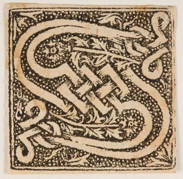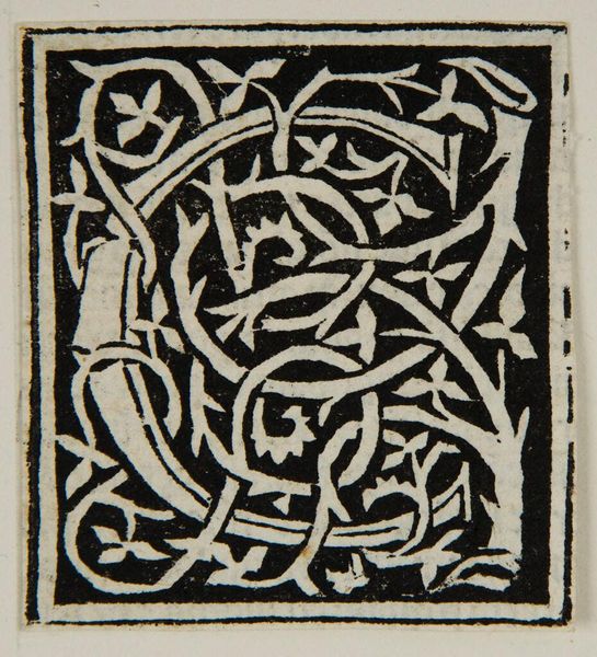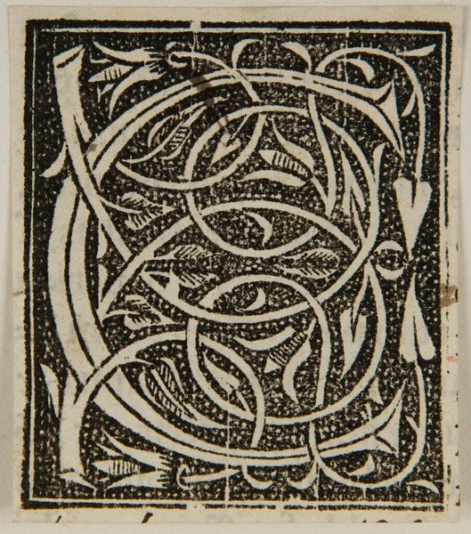 Editor: Here we have an anonymous block print titled "Letter Q." I find the intertwining vines and the stark contrast between black and white visually striking. What can you tell me about its historical context? Curator: These illuminated letters often appeared at the start of chapters in early printed books. Think about the democratization of knowledge that Gutenberg's press enabled. How did these decorative elements contribute to that shift, making texts accessible, yet retaining an echo of hand-crafted manuscripts for a new audience? Editor: So, it's a bridge between old and new technologies, making knowledge more accessible. Thank you, I hadn't considered that aspect. Curator: Exactly! The image becomes more than just a letter; it's a signifier of a changing cultural landscape.