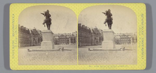 Ernest Eléonor Pierre Lamy made this stereoscopic photograph of the Binnenhof of the Château de Saint-Cloud in France. Stereoscopic photographs like this one were immensely popular in the mid-19th century as a form of mass media and entertainment. The dual images, when viewed through a stereoscope, created a three-dimensional effect, offering viewers a virtual experience of places they might never visit. The Château de Saint-Cloud, a symbol of French royalty and later imperial power, was frequently depicted. This photograph reflects the Second Empire's fascination with grandeur and spectacle. The Château itself, with its formal gardens and imposing architecture, embodies the era's aspirations. It acted as a backdrop for courtly life and political events, therefore photography served to disseminate images of power and reinforce social hierarchies. To understand this photograph, historians consult archives, newspapers, and other visual materials. This allows us to see how such imagery played a role in shaping public opinion and reinforcing dominant social norms.