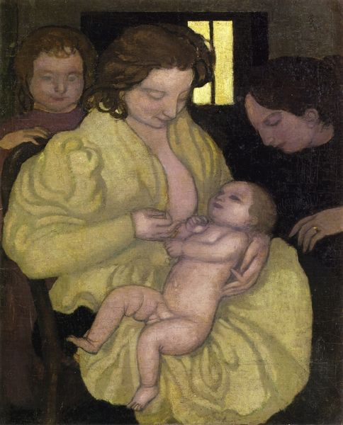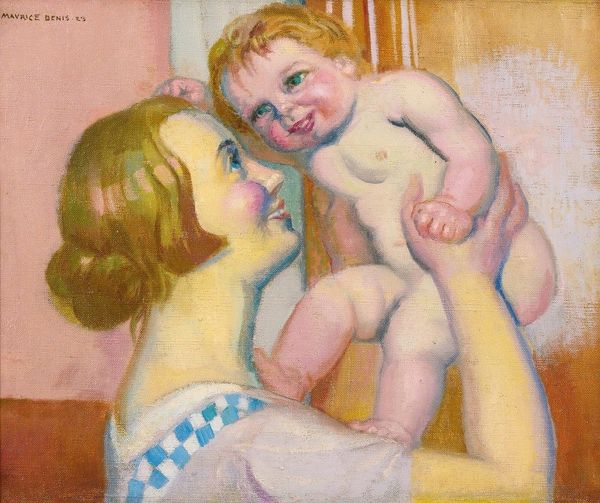 Maurice Denis painted this tender scene of motherhood with oil on canvas. The prominent apple introduces layers of meaning that stretch across time. The apple, held by one of the women, immediately evokes the biblical story of original sin, where it represents temptation and the loss of innocence. But observe how Denis recasts this symbol. Instead of focusing on the fall, the apple here seems to signify the potential for renewal and the cycle of life through motherhood. The motif of the apple, laden with symbolic weight, reappears throughout art history. Consider its presence in classical mythology as an attribute of Venus, the goddess of love, or in countless Renaissance paintings where it symbolizes salvation through Christ. In Denis's hands, the apple becomes a celebration of earthly love, a symbol deeply embedded in our collective consciousness. This reflects our complex relationship with nature, desire, and the continuous rebirth of life. It serves as a poignant reminder of how symbols evolve, adapt, and resurface, carrying echoes of the past into our present understanding.