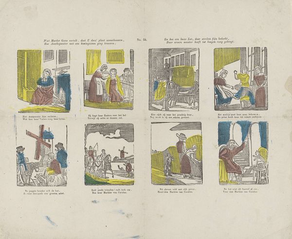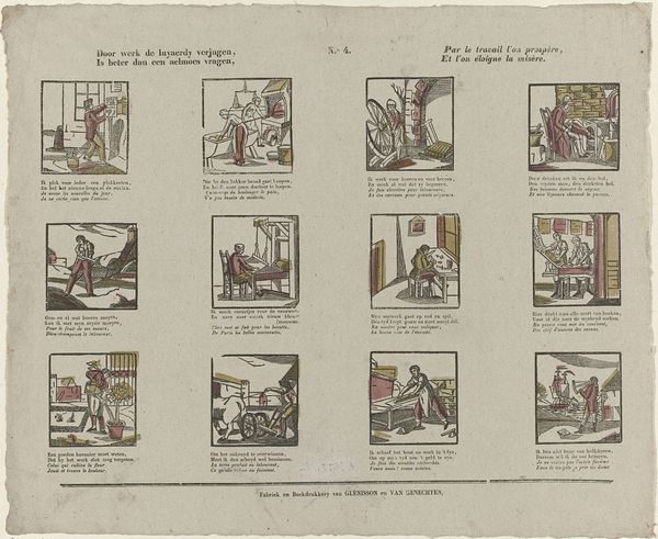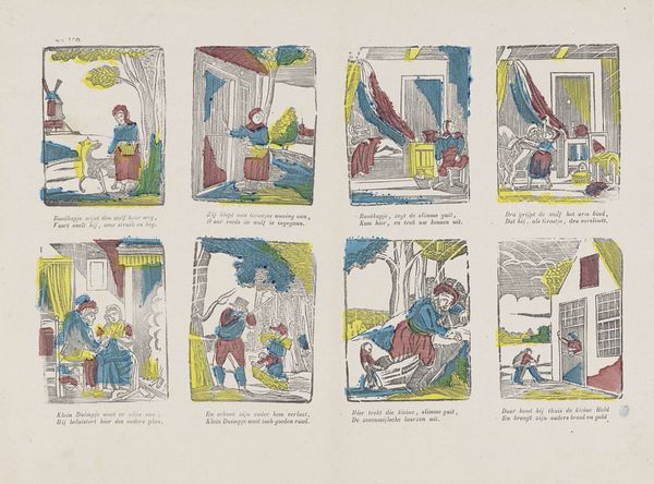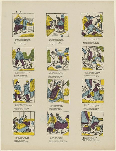This print by Franciscus Antonius Beersmans presents us with twelve vignettes that capture various scenes from daily life. These scenes, though simple, are steeped in symbols of bourgeois life and morality. Consider the recurring image of the child, often engaged in playful or mischievous activities. This figure echoes through art history, reminding us of the archetypal putto in Renaissance painting or the "enfant terrible" found in romantic literature. Here, however, the child also serves as a symbol of innocence and burgeoning independence, a reflection of the era's burgeoning middle-class values. We can see in the depiction of these children, a subtle yet profound emotional current. The universal human experience of growth and discovery, as we viewers engage with this artwork we are reminded of our own childhoods and our own experiences with these familiar feelings. The artist taps into a collective memory, resonating with our deepest selves. These images continue to evolve, as symbols of a particular time but also a reflection of timeless human experience.