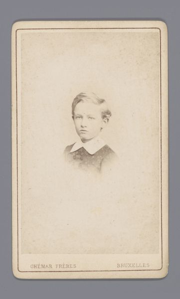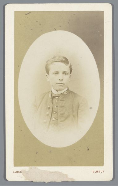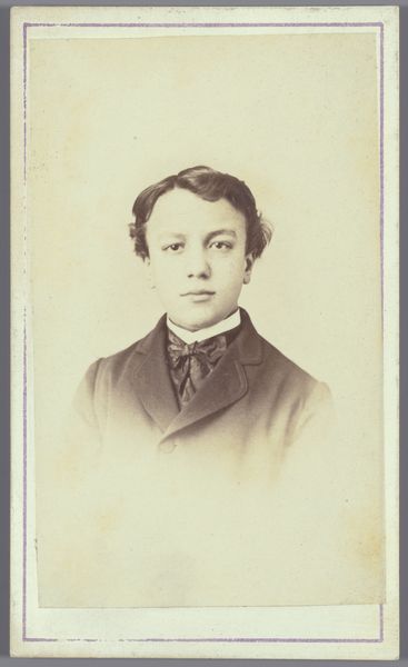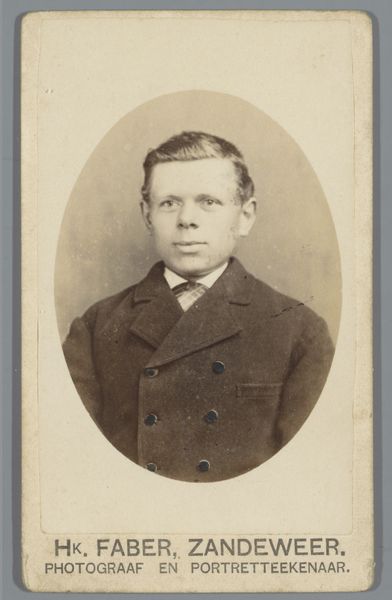 Curator: Let’s take a moment to consider this piece, "Portret van een onbekende man" attributed to Charles van Boghout, dating roughly from 1885 to 1911. The medium appears to be a collotype photograph, perhaps touched with colored pencil. Editor: The immediate feeling? Nostalgia. Looking at his gentle expression, the faded sepia tones, it's like finding a forgotten memory tucked away in a grandparent's attic. The oval framing adds to that dreamy quality. Curator: That oval presentation aligns with the late 19th-century photographic portraiture tradition, very much a part of the rising middle-class aspiration of preserving family lineage. I am particularly drawn to consider how the relative accessibility of photography offered new modes of representation for individuals previously excluded from elite portraiture traditions. Editor: Exactly! It's not some regal duke, but perhaps a budding businessman, an aspiring writer, an ambitious nobody. The textured suit, the neatly knotted necktie... he’s making a statement without saying a word, don't you think? Curator: Yes, I am particularly intrigued by the lack of details we can recover around the social position of the man; does it imply a broader social narrative related to masculinity, or is that a conclusion too far ahead in view of the lack of further context? How are we to reconstruct agency across the absence of the man’s individual history? Editor: True, true. Perhaps he wished to mirror those in power, reflecting upward mobility but it's also possible he embraced the newly gained possibilities of posing for photographic records and memorialization beyond traditional painted renderings. The anonymity is interesting to be a tabula rasa to let each observer find something of them in that face. Curator: An intriguing perspective. The absence of explicit identity markers encourages us to project onto the figure, reflecting our contemporary understanding of representation and identity. I find myself wondering about the choices made by Van Boghout - why opt for collotype over other available photographic processes, and to what extent does that choice inflect our reading of the piece? Editor: Van Boghout offered us a peephole in time, while leaving to us all the narrative-building choices and creative exploration. Curator: Indeed, it's a space ripe for speculation and critical thought. A good starting point to keep inquiring on our role as contemporary viewers.