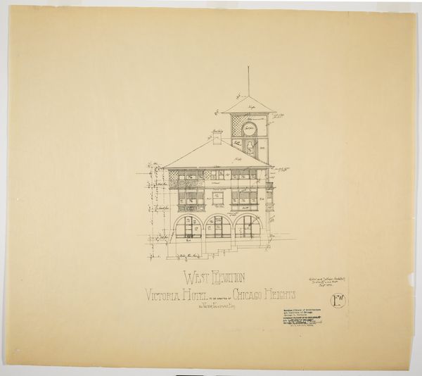 Curator: This architectural drawing presents the east elevation of the William Borden Residence in Chicago, designed by Richard Morris Hunt in 1886. The Art Institute holds this delicate plan which offers an important window into the opulent domestic architecture of the Gilded Age. Editor: What immediately strikes me is the careful precision of the linework, especially given the building's ornate design. The subtle hatching to give definition to the stone—it is very carefully done, and the overall palette gives a tranquil yet somewhat stern feel. Curator: Hunt's design reflects the era's architectural ambition, drawing inspiration from French Renaissance chateaus. Buildings like this were designed not just as homes, but to project status and wealth within the rapidly industrializing urban environment of Chicago. The Borden residence exemplifies a particular social trend where nouveau riche families constructed prominent mansions in urban cores to showcase success. Editor: You can see this attention to status even in the plan; consider how the façade, and its meticulously drawn fenestration, plays with proportion and light. Notice, also, how the eye is drawn upward, emphasizing height, a compositional tool to make a powerful impression. The facade gives the distinct impression of controlled grandeur. Curator: And how the residence was positioned, playing a role in shaping the city's physical and social landscape. The placement and architectural design conveyed symbolic meaning. Structures like the Borden residence reshaped neighbourhoods, reflecting profound shifts in the social dynamics of wealth and power during this period. The style speaks of class hierarchies etched in stone and mortar. Editor: Absolutely. From a formal perspective, you can sense how its heavy materiality balances symmetry with asymmetry: note the tower at the west versus the chimney at the east. Its complex textures provide a varied surface that must have been delightful with changing light, and even, perhaps, softening any possible monumental oppressiveness through playful textural details. Curator: Knowing it no longer exists amplifies the historical weight of this drawing for me, reminding us of the constant change urban spaces undergo reflecting our changing societal priorities. Editor: Indeed. A reminder of the artful balance in play between structure, aesthetics, and society at one historical moment.