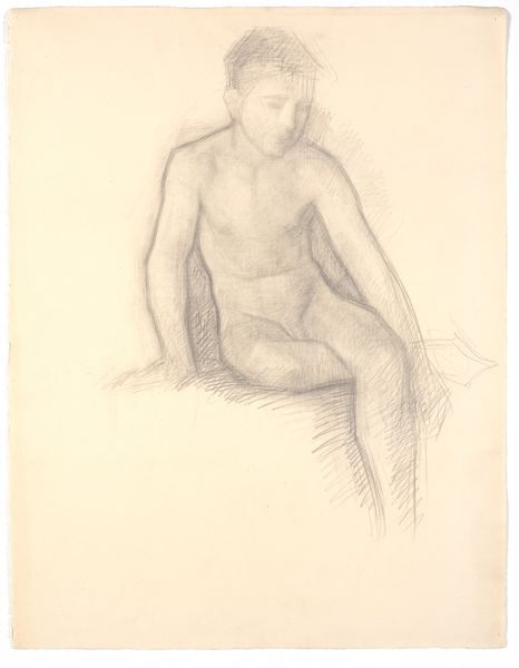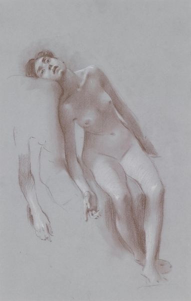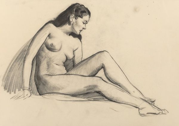 George Bellows created this charcoal drawing titled "Nude Woman" during a time when traditional artistic standards often idealized the female form. Bellows was an American realist painter known for his depictions of urban life in New York City. His work often challenged the refined expectations of the art world. This drawing offers an intimate and unembellished portrayal of the female body. The woman is depicted seated with her head downcast, hands clasped, in a moment of contemplation. It invites reflection on the lived experiences of women, away from the objectification and fantasy that were frequently applied to nude subjects in art. Bellows's choice of medium, charcoal, lends itself to a raw and immediate style, diverging from the polished approach of traditional academic nudes. This work captures the model's humanity and offers a candid glimpse into a private moment, challenging viewers to see beyond conventional standards of beauty and engage with the emotional and personal dimensions of the subject.