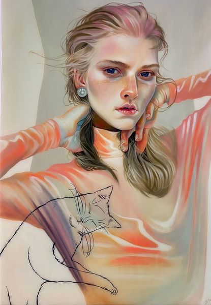 Martine Johanna's painting Subdue seems to float in a haze of unreal color. It's like she's chasing after something just out of reach, a feeling more than a scene. Look at the way she builds up the paint, thin layers, almost transparent. You can sense her hand moving, searching, each stroke adding to the story. The blues are icy, watery, like she’s submerged. Then, these pops of orange and red beneath the surface, like hidden embers. It’s a dance of cool and warm that feels unsettling, and yet, intimate. And those watery, blue lines weaving around her body? They remind me of Agnes Martin's grids, but looser, more organic. Both artists use repetition, but where Martin seeks a kind of serene order, Johanna embraces something more fluid and uncertain. Like life, this painting is full of ambiguities, inviting us to get lost in its currents.