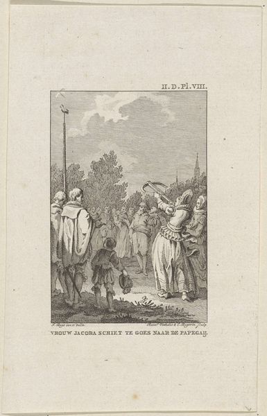 Editor: Here we have George Cruikshank's "Randulph Crew Introduced to Beau Villiers on the Mall," a detailed print. I notice a lot of social activity. What do you see in this piece beyond the surface? Curator: This work offers a lens into the performative aspects of social hierarchies. Look at the figure of the Black child with the dog. How does his presence contribute to a narrative of power and control, reflecting the colonial realities of the time? Editor: So, it's not just a charming scene, but a commentary on social and racial power? Curator: Exactly. Cruikshank subtly embeds critiques of empire and class within seemingly benign social interactions. Considering this challenges us to confront the uncomfortable truths within art history. Editor: I never thought of it that way. It’s disturbing, but it gives me so much to think about. Curator: Indeed. Art can be a powerful tool for uncovering the complexities of our past and present.