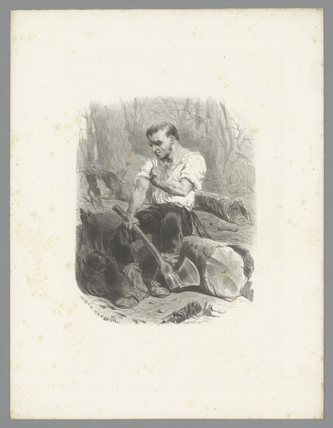 Editor: This is "Kussend stel bij maanlicht," which translates to "Kissing Couple in Moonlight," an engraving by Célestin Nanteuil created sometime between 1823 and 1873. The embracing couple appears almost swallowed by the surrounding darkness, yet they are illuminated by a bright moon. What can you tell me about this romantic image? Curator: This engraving encapsulates many elements of Romanticism: the focus on intense emotion, the sublime power of nature, and the inherent darkness in the human condition. But consider, too, what "Romantic love" meant in Nanteuil's time. How did societal expectations around marriage, class, and gender shape the possibilities for genuine connection, particularly for women? Editor: So you're saying the image isn't just a simple love scene? Curator: Precisely! The couple is shrouded in shadows, almost hiding, perhaps indicating a love that exists outside of societal norms or expectations. We should question whose love is deemed acceptable, and what power structures define those boundaries. The moon, a classic symbol of feminine mystery, lights their escape. What do you think that escape entails? Editor: I never thought about the restrictions on love. I guess I assumed the image represented pure emotion, but maybe it also critiques the constraints on love in the 19th century. Curator: Exactly! Art can operate on multiple levels. Images of love, particularly within Romanticism, can also be potent sites of resistance and longing for something more. The “more” might be about social reform, a deeper emotional experience, or both. Editor: I'm starting to see this image with new eyes, beyond the surface sentiment. Curator: Examining the social and historical contexts allows us to see these older works as still deeply relevant today as a touchstone for liberation in love. Editor: Thanks for broadening my perspective! It makes the engraving far more compelling.