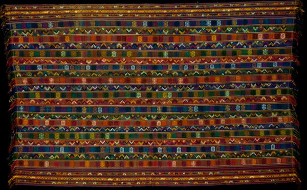 This kira, made anonymously, is a textile, likely woven, with incredible care. Look at the earthy palette, the subtle shifts between golden yellows and rusty browns, it's a testament to the beauty of natural dyes and the patience of the maker. What strikes me most is the texture. You can almost feel the warp and weft of the fabric, the way the light catches on the raised threads. The horizontal bands aren't perfectly uniform; there's a slight wobble to them, which gives the piece a human quality. And within those bands, there’s a secret language of shapes and patterns, small geometric motifs that peek out and then disappear. It reminds me of Agnes Martin's grids, but warmer, more tactile. This kira, like a painting, invites us to slow down and notice the small imperfections that make it so special. It celebrates process, the labor of the hand, and the quiet beauty of repetition.