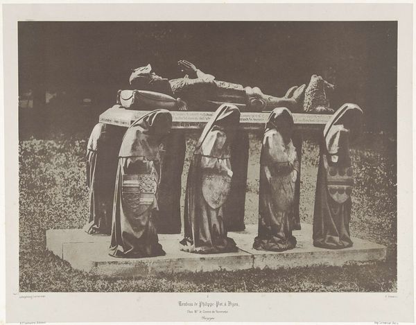 Charles Marville created this photograph of the Virtues Crushing the Vices at Strasbourg Cathedral using the 19th-century process of Albumen silver printing. This procedure would have involved coating a paper base with a layer of egg white, then sensitizing it with silver nitrate. The resulting print presents a remarkably crisp image of the stone carvings. Look closely, and you can appreciate the texture of the stone and the sculptor’s tooling. Marville’s image also shows the weathering of the stone, which speaks to both the environmental conditions and the labor involved in maintaining the cathedral. Consider too the social context in which this photograph was made. Cathedrals were often seen as symbols of civic pride and spiritual authority. By documenting these sculptures, Marville participates in this tradition, celebrating the enduring power of faith and the skill of the artisans who created it. This photograph serves as a reminder of the intertwined histories of art, craft, and the social values they represent.