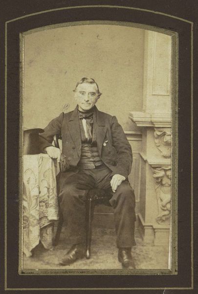 Editor: This daguerreotype, dating back to the 1850s or 60s, portrays a seated man in a white vest and dark coat. It's such an austere and compelling image. What stories do you think it tells us about the era? Curator: Well, it's fascinating how this seemingly simple portrait encapsulates a crucial period of social transformation. Daguerreotypes, in their early days, democratized portraiture. Suddenly, likenesses weren't just for the elite painted by hand, but available to a broader segment of society. What do you think the sitter's posture and attire tell us? Editor: I notice the way he is looking off to the side, perhaps implying his awareness of the photographer but also perhaps alluding to something more... What's most striking, to me, is the sense of respectability in his bearing. Does the portrait communicate any broader political messages to you? Curator: Absolutely, especially when considering the historical context. This was a time of immense upheaval – industrialization, burgeoning middle class, evolving societal norms. The careful posing and controlled expression speak to the sitter's aspiration to project a specific identity. He’s performing respectability, almost. The rising middle class craved recognition, and portraiture, especially through new technologies like daguerreotypes, provided a potent tool. This photograph marks a significant power shift – literally, who had the power to be seen and represented. Editor: It’s incredible how a single image can hold so much historical weight. Looking at this portrait again, I now see not just an individual, but a symbol of societal change. Curator: Exactly. Art is rarely created in a vacuum. Understanding the social and political forces at play can illuminate the deeper meanings and significance of any artwork.
