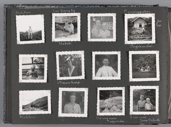 Editor: Here we have “KLM-personeel en handtekeningen,” a collage featuring photographs and prints, attributed to an anonymous artist around 1949. It’s a fascinating assembly, like a scrapbook page. I’m struck by the repetition of portraits, especially alongside what appears to be a dense collection of signatures. What do you make of it? Curator: It's intriguing as a social document, particularly viewed through the lens of institutional history. It seems to be a constructed image intended for the public eye or a closed internal circuit, probably circulated among KLM employees at that time. The arrangement, grouping photos with signatures, elevates these figures – mostly men – to a level of recognition, celebrating KLM's workforce, giving them some notability within the frame of the organization. Editor: So, it's less about individual artistry and more about collective identity? Curator: Precisely. Think about the context of the time. Post-war, national pride, and institutional branding were significant. KLM, as the Royal Dutch Airline, was central to re-establishing Dutch identity. The presentation suggests this was used within the community. Editor: What do you think the effect would be? Almost a family photograph? Curator: Maybe, but perhaps it’s more about codifying hierarchies. Whose signatures are most prominent? Where are they placed? Are there distinctions in the images of the crew and the administrators? That arrangement would suggest social ranking in practice, where its circulation would either reassert social power dynamics or perhaps equalize its workforce’s perceived relevance to a national airline’s branding. Editor: That's a darker reading than I initially imagined, but it does make you consider the power dynamics. Thank you for sharing these valuable perspectives! Curator: My pleasure. The point is that artworks such as these may encode some unexamined power dynamics within corporate structures in society. Approaching them from that point of view will yield great understanding and allow better insight into how imagery continues to influence us today.